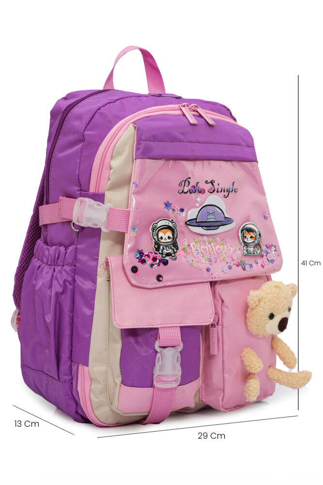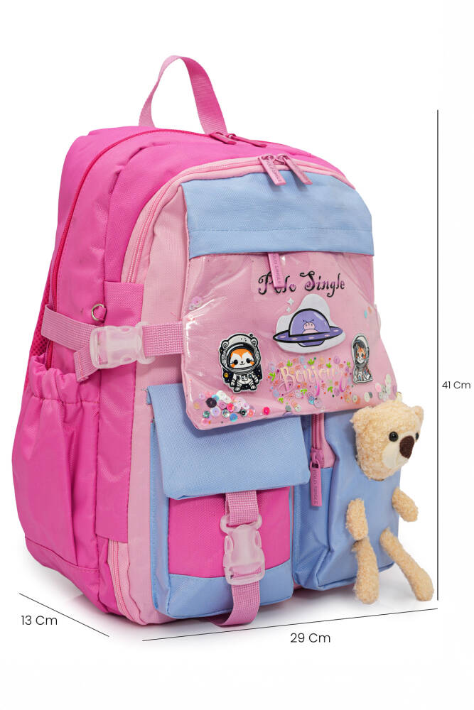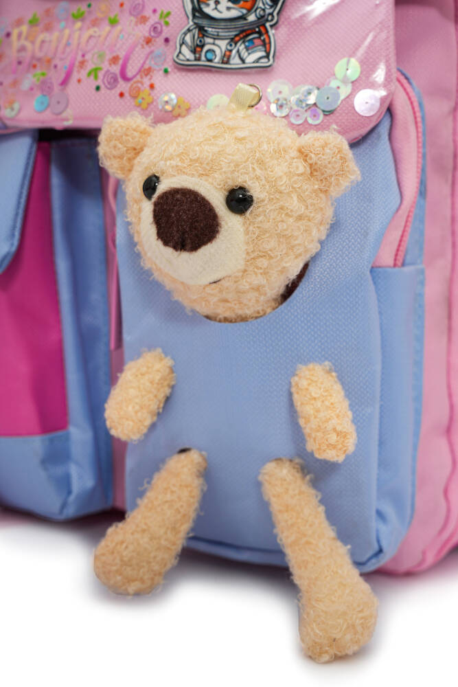 İlkokul yolculuğu, minik kahramanların keşif ve öğrenme macerasının başlangıcıdır. Bu özel sırt çantası, kız çocuklarının hayal dünyasını ve neşesini yansıtmak için tasarlandı. Üstünde peluş tavşan, sanki her adımda onlara eşlik ederken; astronot kedi baskıları ise hayal gücünü gökyüzünün ötesine taşıyor. Canlı cam göbeği rengiyle enerjik ve taze bir görünüm sunan bu çanta, hem kullanışlı hem de eğlenceli. Çocuğunuzun her gün okulda kendini özel hissetmesini sağlayacak, yeni arkadaşlıkların ve öğrenme serüvenlerinin en sevilen yol arkadaşı olacak!