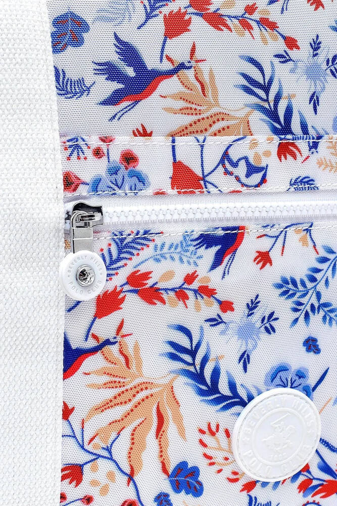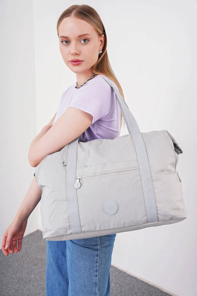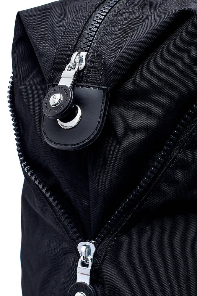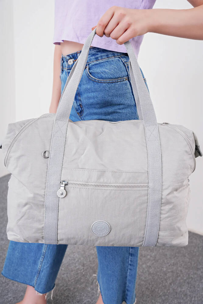 Fermuarlı kapama sistemi, eşyalarınızı güvenle taşımanıza olanak tanırken, ön kısımdaki fermuarlı cep ise küçük eşyalarınızı düzenli şekilde saklamanızı ve kolay erişmenizi sağlar. Ön yüzünde yer alan yuvarlak logo, çantanın modern görünümüne zarif bir dokunuş katar.