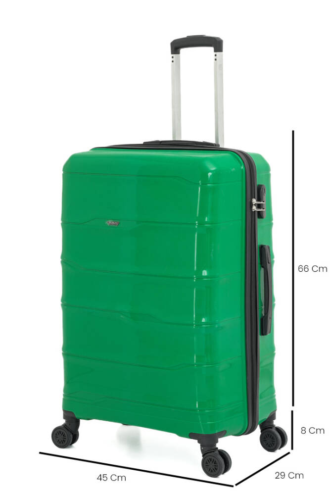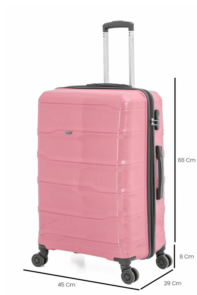 Küçük, orta ve büyük boydan oluşan bu set, tüm seyahat ihtiyaçlarınızı karşılar. 360 derece dönebilen 4 çift tekerleği sayesinde valizlerinizi her yönde kolayca taşıyabilir; geniş iç hacmiyle eşyalarınızı düzenli bir şekilde yerleştirebilirsiniz.