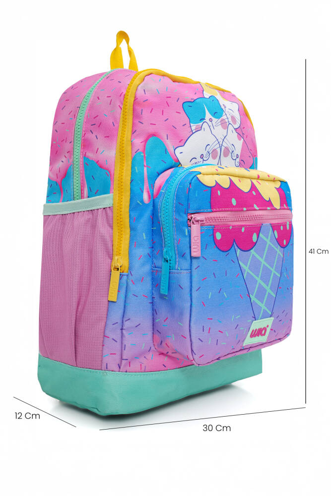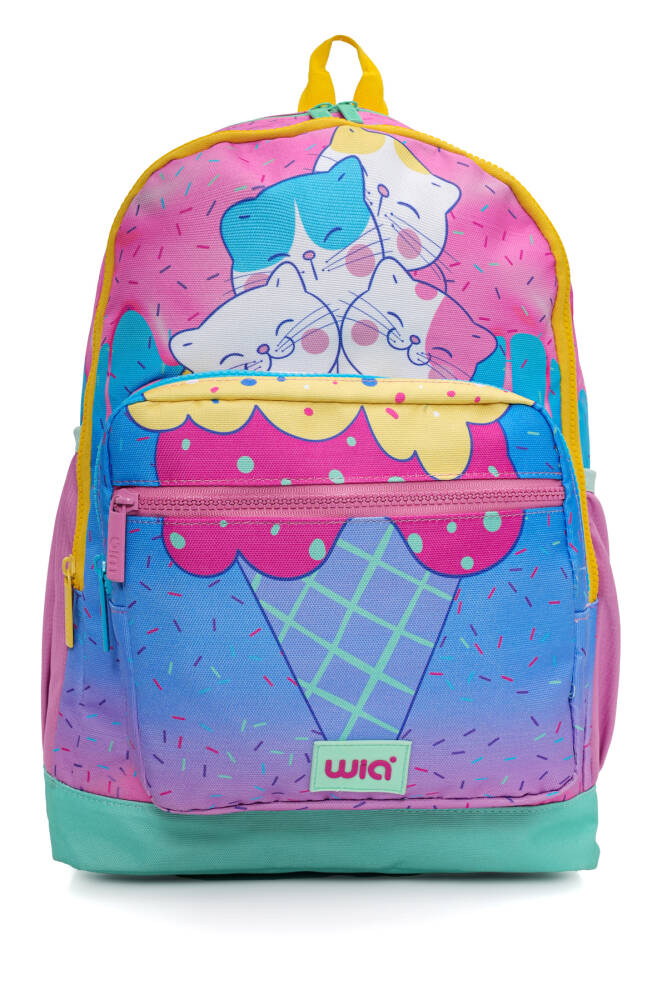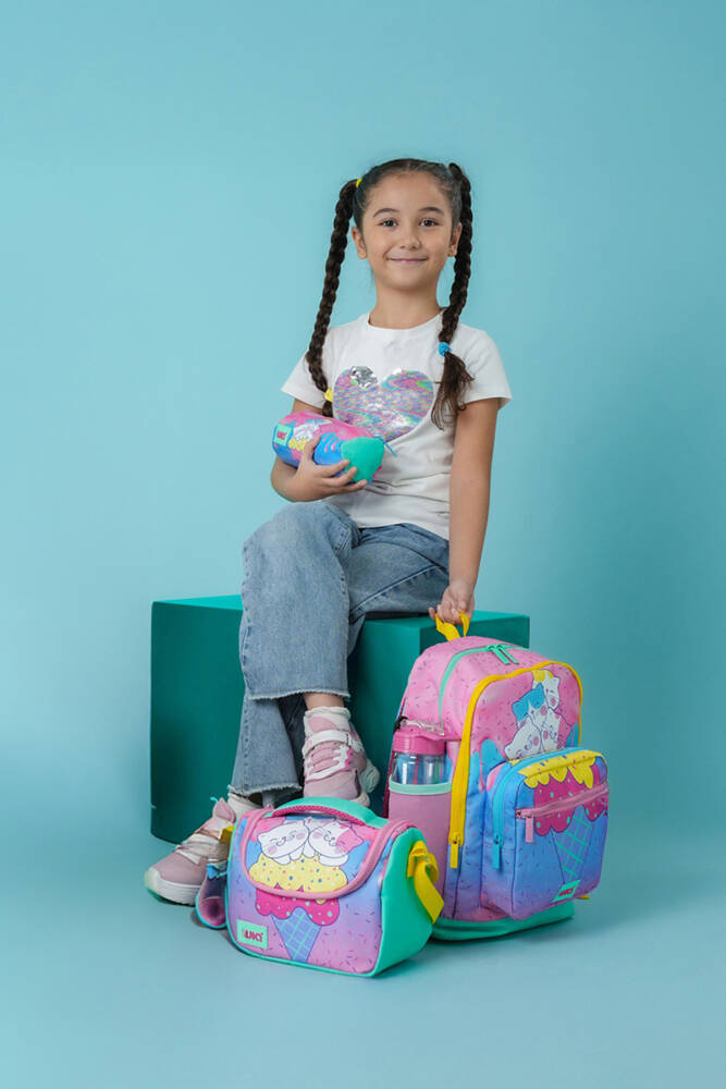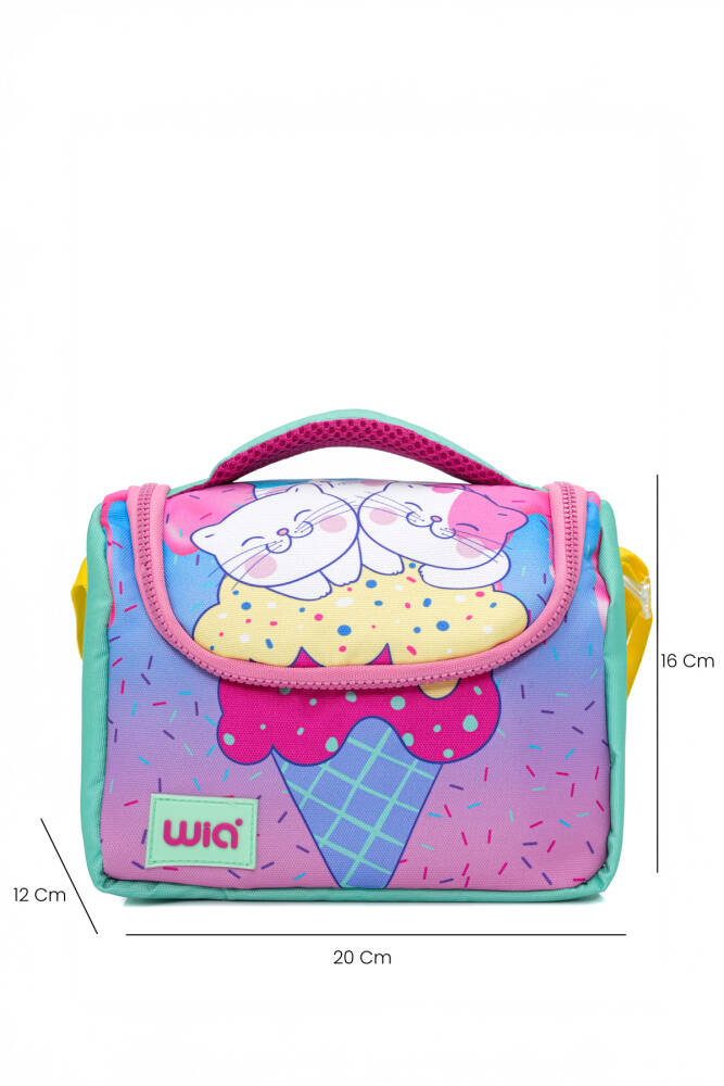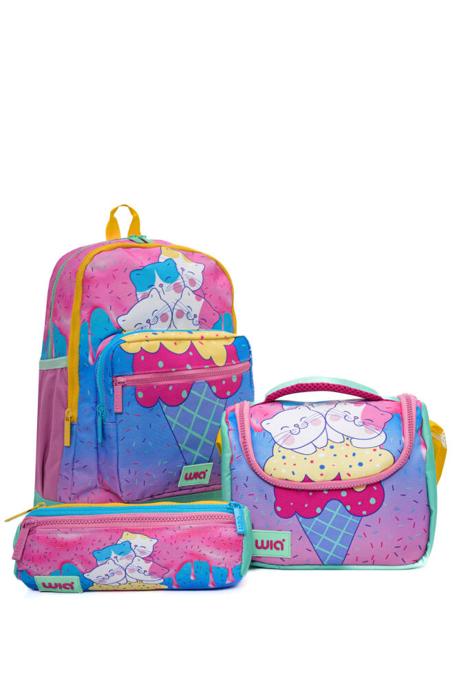 Wia Ice Cream with Cats Kız Çocuk Çanta Seti, genç kızların okul yaşamında ve günlük aktivitelerinde stil sahibi olmalarını sağlamak için tasarlanmış canlı ve renkli bir settir. Set, içerdiği sırt çantası, kalemlik ve beslenme çantası ile tüm ihtiyaçları karşılar. Eğlenceli tasarımları ve pratik kullanımlarıyla çocukların favorisi olacaktır.