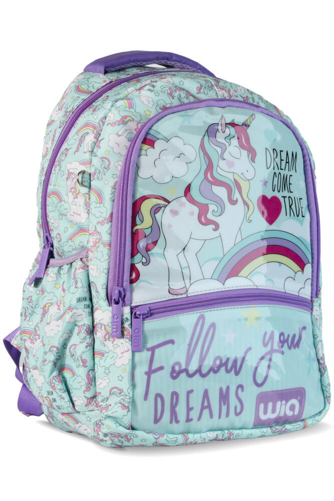 Çift fermuar ile açılan geniş ana bölme kapasitesi ilkokul için uygundur